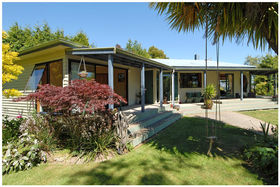 It would be difficult to find a more secluded and peaceful rural retreat that is still so close to those everyday amenities of life! This spacious 3 bedroom plus office, multi living room home sits in an elevated position with stunning uninterrupted views to the Western Ranges. It has an open fire for ambience and a heatpump for convenience, a master bedroom with ensuite that opens out to a spa area, a large open plan living and dining, and is completely private; sheltered by established trees and hedging. The home is surrounded on 3 sides by a covered verandah which provides a sunny spot at all times of the day, where you can sit and enjoy your own tame family of tuis.