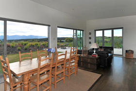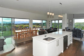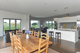 The living spaces in this lovely home are large and light filled, with much of the extensive glazing opening out onto the flat living areas around the home where clever landscaping make the most of the setting but provide privacy and shelter from any breeze.