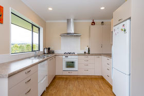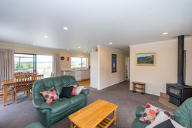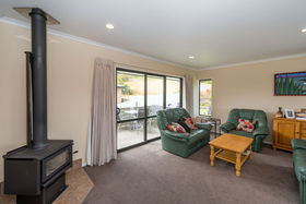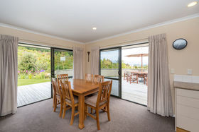 The lounge and dining room open out in 3 directions to the beautifully presented outdoor spaces; extensive flat lawn areas with some exotic but mainly native edging which flows down into gullies that are easy care with their mature native bush and are a haven for the birds; a large deck where you can enjoy panoramic views towards the Richmond Ranges; and sealed off street parking. The lounge has a new logburner, the heat from which is moved down the hall via the heat transfer system, and the large master bedroom has the convenience of air conditioning and underfloor heating in the master ensuite.