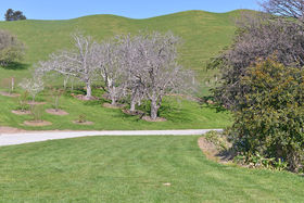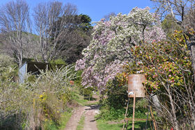 Set just below the home is a sheltered microclimate under grand oaks and magnolias where avocados, tamarillos and a variety of fruits and nuts more usually found in tropical climates, thrive.