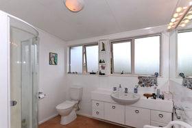 The ground level also enjoys an impressive gourmet kitchen, bathroom, bedroom, study and double garage. There is a gas fire, heatpump and underfloor heating for cold winter days as well as being double glazed throughout. Upstairs there are two more double bedrooms with fabulous urban and rural views, and another bathroom. Storage in this home is abundant.