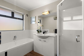 Step inside and you'll appreciate the quality with the spacious entranceway, and living area located privately to the North-West side of the house. The spacious open plan living area with a separate living can be closed off and sliding doors create nice indoor/outdoor flow to the private entertaining space. The soft wool carpet underfoot, double glazing, two heat pumps, plus a cozy gas fire, ensures comfortable living year-round.