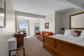 The generous master suite enjoys absolute privacy on the top level, complete with a beautifully appointed ensuite and a shower that frames an unforgettable view. Downstairs, a spacious guest suite offers its own bathroom, patio, and a serene outlook-perfect for visitors or extended family. The lower level also includes a double garage, adding convenience to the home's impressive list of features.