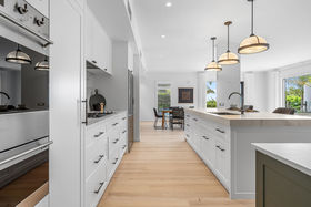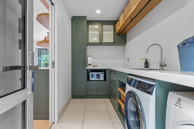 • Designer kitchen with a lacquer finish and Dekton porcelain and Corian benches. The generous size scullery provides an abundance of storage and is versatile in use.