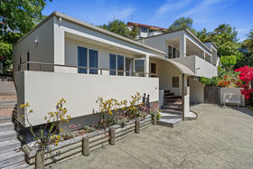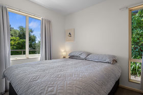 Upstairs, the heart of the home, comprising the kitchen, dining, and lounge, opens out onto a deck where you can soak in the views of the Tasman Bay and Western Ranges. A skylight above the kitchen fills the space with natural light, highlighting the freshly painted interiors and creating an uplifting, airy atmosphere. The sunny, private courtyard outside the dining and kitchen provides an additional space for outdoor dining, entertaining, or relaxing in peace. This level also features a bathroom, a separate toilet, a bedroom, and a convenient laundry with external access.