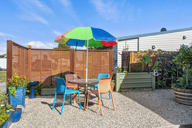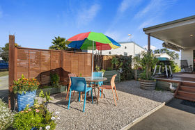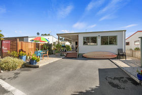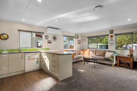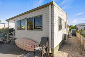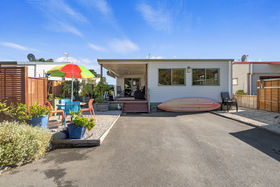 The relocatable home is offered for sale, with the site leased from Tahuna Beach Camp - contact Andrew Follows for more information.